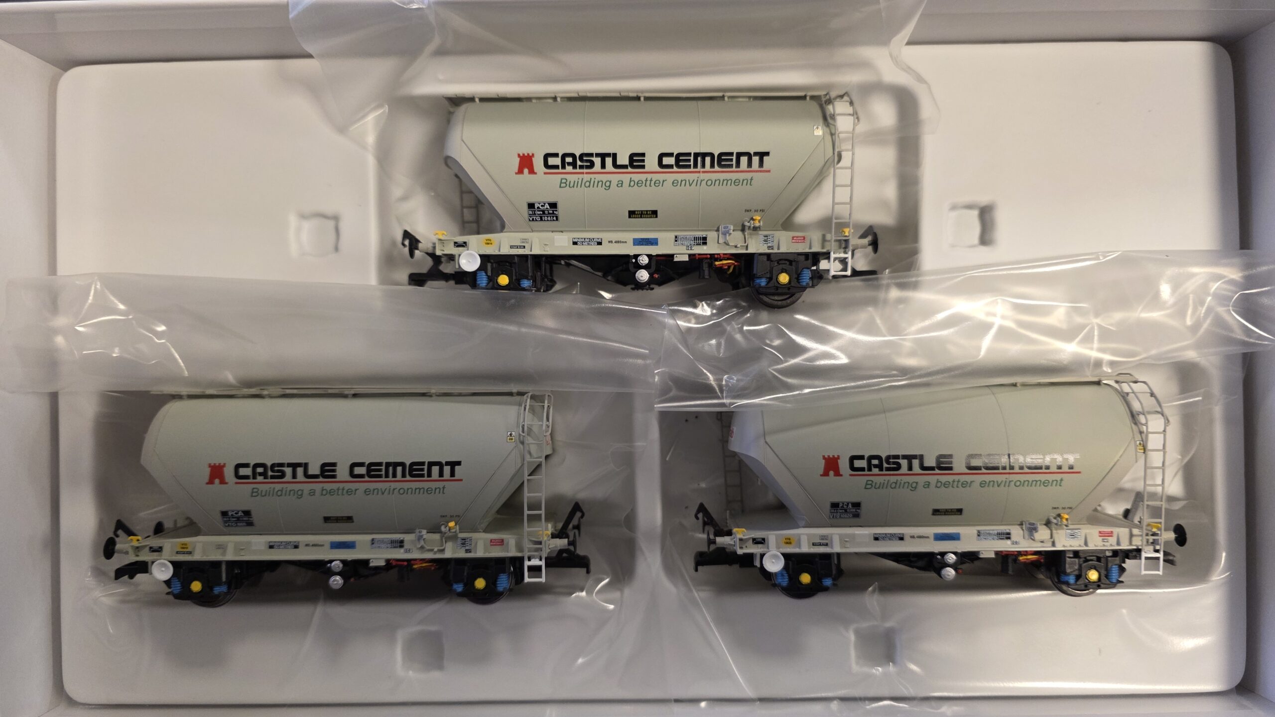 Accurascale ACC2036CS-Q PCA bulk cement hoppers in revised (2000s) Castle Cement livery – Pack Q – pack of three